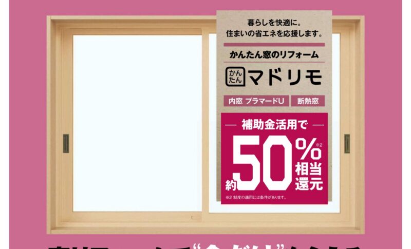 暖房の効率化、光熱費の削減、健康のために住まいの断熱化しませんか?約50%相当が還元される過去最大級のリフォーム補助金。