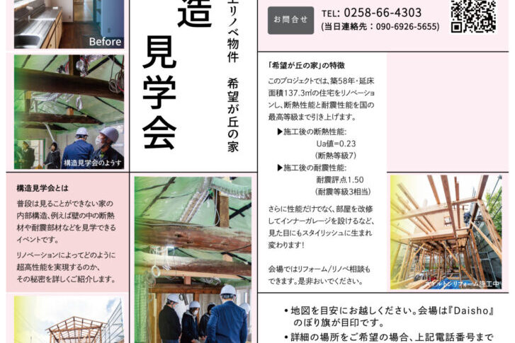 お施主様のご厚意で施工中のリノベーション現場の構造見学会(施工中見学会)を開催します。