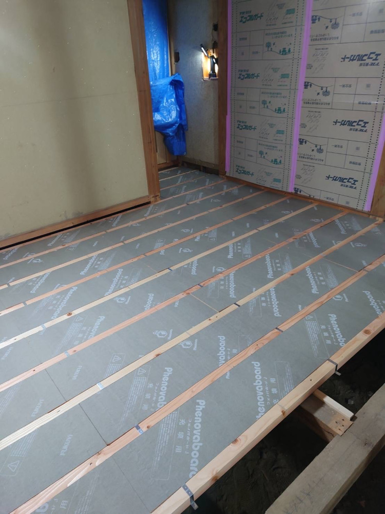 新規床断熱:「足元が冷えて、冷えて」というお施主様の言葉とおり、既存の床には断熱材がありませんでした。