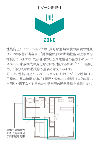 建物全体ではなく、健康リスクに直結するエリアのみを断熱する「ゾーン断熱」という手法をとっています。