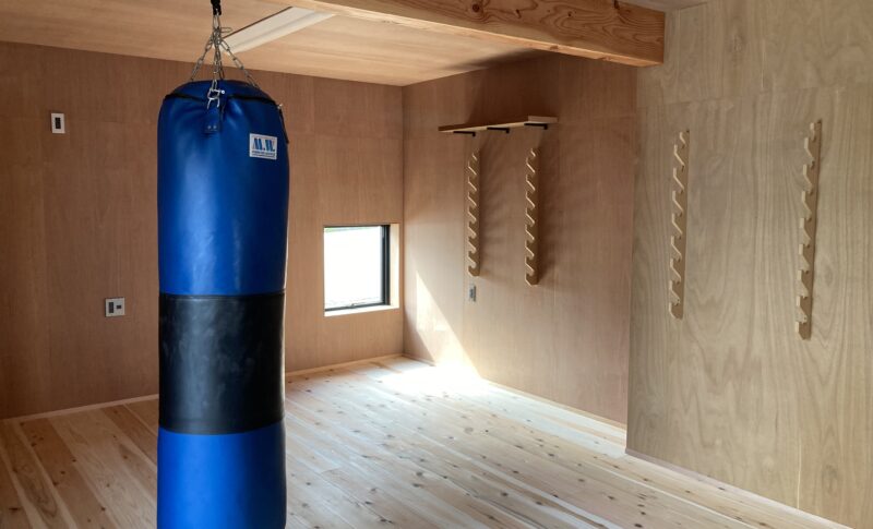 サンドバックを設置した趣味室は 非断熱エリア。
