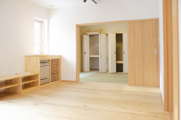 床材には無垢材をふんだんに使用し、木のぬくもりが感じられる家に。