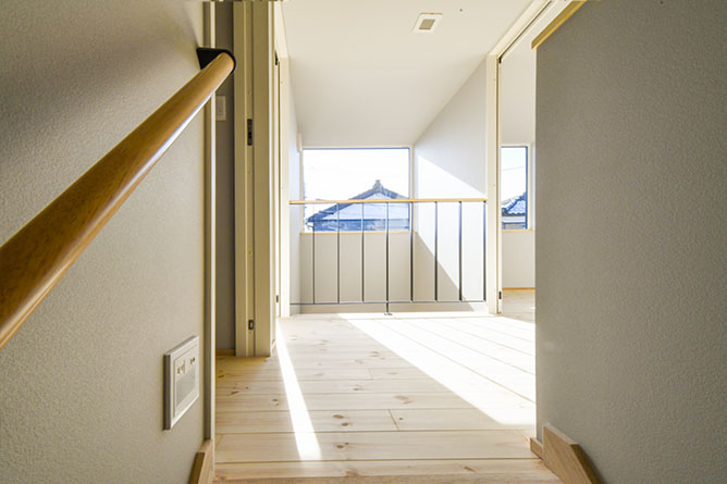 南東側に解放感と居場所を兼ね備えた住まい。朝の身支度の始まる午前7時頃から、リビングダイニングには日差しが差し込み始めます。
