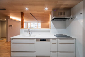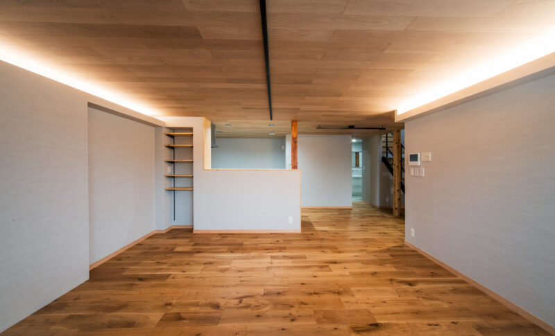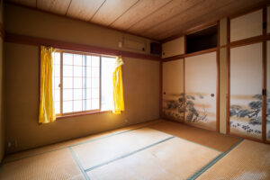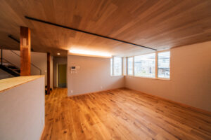 インナーガレージについては、増築では敷地の状況をかんがみても余白はほとんどなく、かつ、建築基準法上の面積規定(敷地に対する建物の面積割合:建ぺい率という)もオーバーする可能性が高かったので、東側道路に面した2間続きの和室をガレージにリノベーションすることをご提案し、ご採用いただきました。