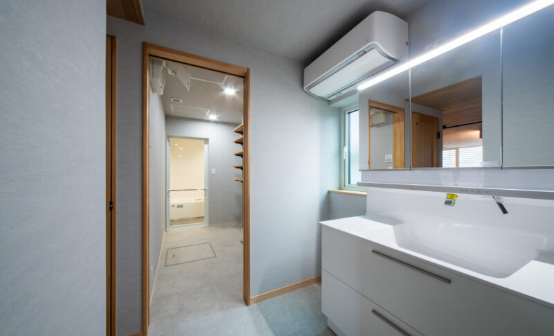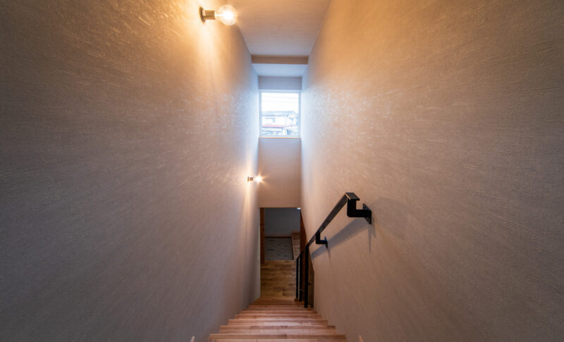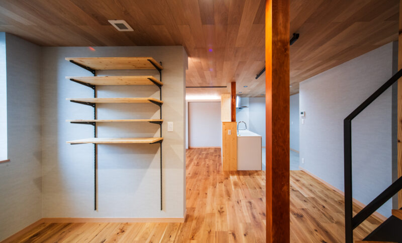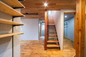 インナーガレージは玄関に隣接させ、雨に濡れずに出入りできるように設計。ちょっとした間取りの工夫ではあるが、お施主様には大変喜んでいただきました。